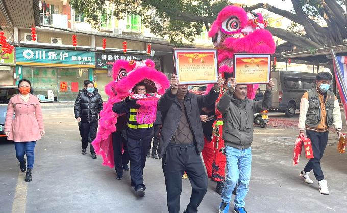慰問組一行熱熱鬧鬧送喜報。