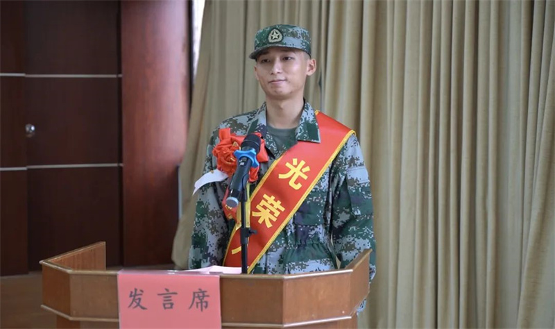 呂煒康代表新兵作表態(tài)發(fā)言。通訊員 提供