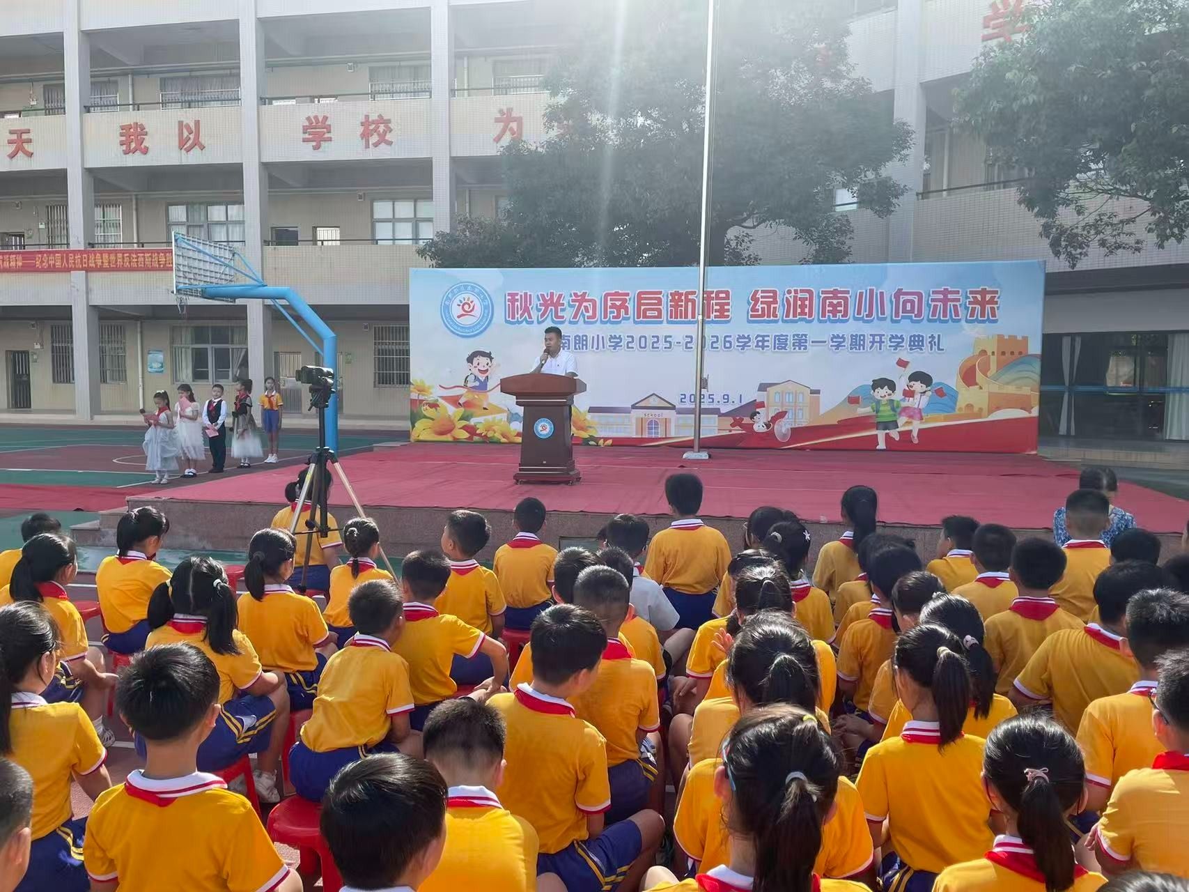 開學(xué)典禮上,南朗街道南朗小學(xué)黨支部書記、校長(zhǎng)杜少君以《銘記偉大勝利,傳承抗戰(zhàn)精神——紀(jì)念中國人民抗日戰(zhàn)爭(zhēng)暨世界反法西斯戰(zhàn)爭(zhēng)勝利80周年》為題,講述了可歌可泣的抗戰(zhàn)故事,為全體師生上了一堂生動(dòng)的思政第一課。