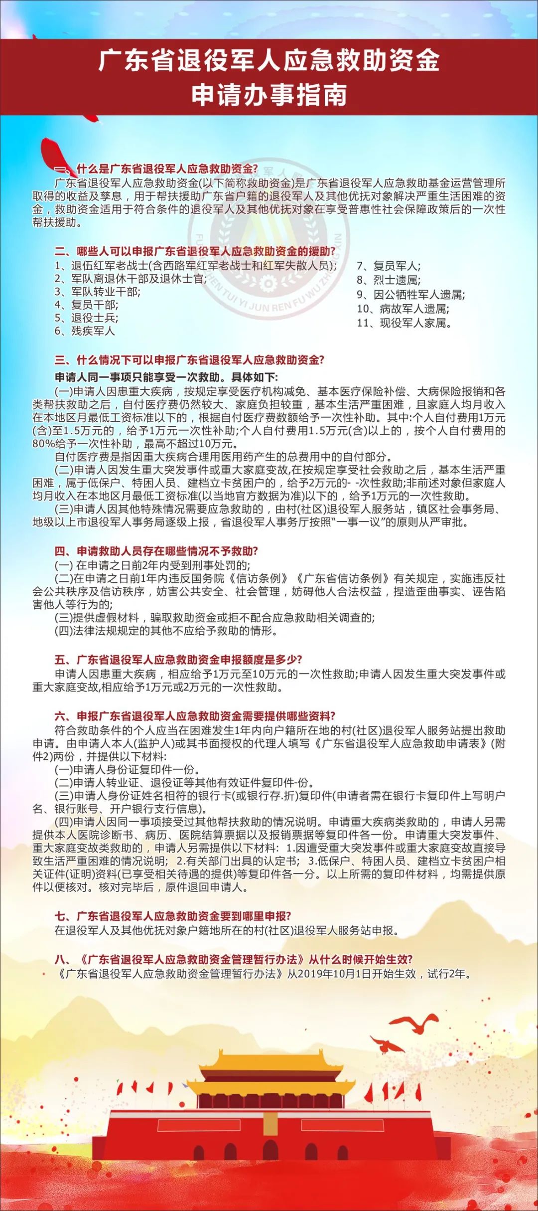 廣東省退役軍人應(yīng)急救助資金自2019年7月設(shè)立以來(lái),為我市退役軍人及其他優(yōu)撫對(duì)象提供了有力的幫扶援助。 其救助類(lèi)型主要分為四類(lèi):申請(qǐng)人因患重大疾病、發(fā)生重大突發(fā)事件、發(fā)生重大家庭變故或其他特殊情況導(dǎo)致基本生活嚴(yán)重困難的。符合條件的申請(qǐng)人可向戶(hù)籍地所在的村(社區(qū))退役軍人服務(wù)站進(jìn)行申請(qǐng)。 |
