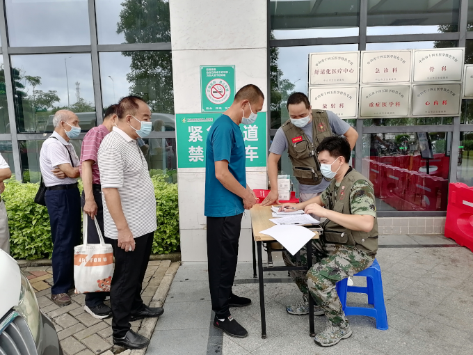 坦洲鎮(zhèn)退役軍人服務(wù)中心工作人員和志愿者在坦洲人民醫(yī)院現(xiàn)場(chǎng)指引重點(diǎn)優(yōu)撫對(duì)象有序進(jìn)行健康體檢。