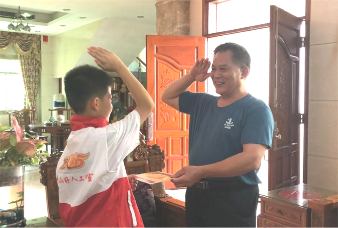 啟動(dòng)儀式后,小欖鎮(zhèn)愛心助學(xué)團(tuán)的親子志愿者們分成多個(gè)小組,對該鎮(zhèn)100位困難退役軍人及部分烈士家屬進(jìn)行走訪慰問,為老兵們送上愛心慰問品及節(jié)日問候。