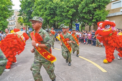 身著迷彩服,佩戴光榮花,一張張青春臉龐上滿是憧憬之情。金秋九月,中山又一批有志青年背上行囊,意氣風(fēng)發(fā)奔赴軍營。 今年下半年,全市共有3000多名適齡青年報(bào)名應(yīng)征,經(jīng)過體檢、政治考核、役前教育等層層選拔,共征集了300多名男兵,在讀大學(xué)生征集比例、大學(xué)畢業(yè)生征集比例再創(chuàng)歷史新高,圓滿完成了上級(jí)賦予的任務(wù)。 “希望你們不管在何處服役,是哪個(gè)兵種,都銘記父老鄉(xiāng)親的殷殷囑托,在部隊(duì)大力弘揚(yáng)中山‘敢想敢闖、敢為人先’的精神,展示出‘中山兵’的良好精神風(fēng)貌,沖鋒在前、勇?lián)笕巍^斗奉獻(xiàn),努力為中山增光添彩。祝新戰(zhàn)友們一路順風(fēng),刻苦訓(xùn)練,能打勝仗,捷報(bào)頻傳!”在出席中山2023年下半年新兵歡送儀式時(shí),中山市征兵工作領(lǐng)導(dǎo)小組副組長、中山軍分區(qū)大校司令員李云濤鄭重地說。 來自三鄉(xiāng)鎮(zhèn)的新兵代表馮林研究生畢業(yè)于青島農(nóng)業(yè)大學(xué),他鄭重承諾:“到部隊(duì)后我們一定牢記使命,安心服役、刻苦訓(xùn)練、嚴(yán)守紀(jì)律、積極進(jìn)取,為祖國和平安寧扛好槍、站好崗,不辜負(fù)國家和家鄉(xiāng)人民的期望!” 敲鑼打鼓,列隊(duì)歡迎。一場(chǎng)歡送儀式,就是一次生動(dòng)的國防教育。歡送儀式上,除了以東鳳鎮(zhèn)新兵張學(xué)培家庭“三代從軍”事跡為背景創(chuàng)作的原創(chuàng)詩歌朗誦《致敬夢(mèng)想的接力》、男聲四重唱《強(qiáng)軍戰(zhàn)歌》等文藝表演,新兵還展示了軍體拳,動(dòng)作干凈利落整齊,儼然已有軍人的模樣?,F(xiàn)場(chǎng),省級(jí)非物質(zhì)文化遺產(chǎn)起灣金龍展演也來助陣,只見金龍起舞、鑼鼓喧天,熱鬧非凡。 兒行千里母擔(dān)憂,歡送現(xiàn)場(chǎng),不少家長熱淚盈眶,拿起手機(jī)記錄著孩子入伍的珍貴畫面,送兵車緩緩啟動(dòng),家長們的目光卻始終不肯轉(zhuǎn)移。一路跟隨,久久不肯離去…… 登上大巴車,新兵們揮一揮手:“再見,中山!軍營,我來啦!” 記者 黃藝杰 張倩 通訊員 黃嘉裕 圖編 文智誠 ◆編輯:龍慧◆二審:蘇鵬蘊(yùn)◆三審:周亞平 |
