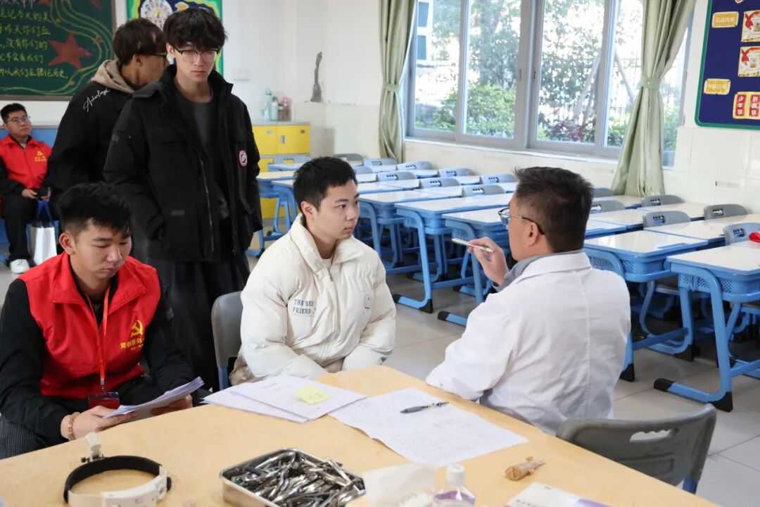 體檢現(xiàn)場,應(yīng)征青年在街道體檢保障人員的引導(dǎo)下,依次排隊進(jìn)入內(nèi)科、外科、五官科、眼科、口腔科等檢查區(qū)域,秩序井然。南朗醫(yī)院醫(yī)務(wù)人員嚴(yán)格按照《應(yīng)征公民體格檢查標(biāo)準(zhǔn)》(2022年版)和體檢流程,認(rèn)真核對身份信息,逐項檢查身高、體重、血壓、視力、聽力等項目,確保不漏檢、不誤檢,嚴(yán)把兵員質(zhì)量第一關(guān)。