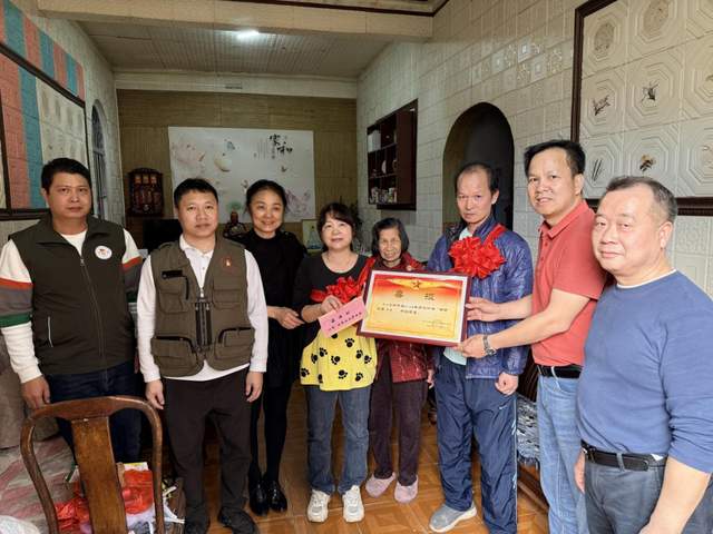 ▲慰問組為濠涌村方漢明家屬送上“四有”優(yōu)秀士兵喜報