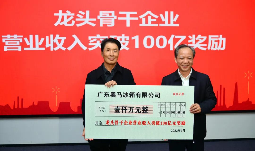 廣東奧馬冰箱有限公司是全球最大的冰箱ODM生產(chǎn)企業(yè),連續(xù)13年成為中國冰箱出口冠軍。去年底的一次調(diào)研,郭文海勉勵奧馬加快打造百億級企業(yè),并承諾目標實現(xiàn)時前來為企業(yè)慶賀。2021年,奧馬不負眾望,營業(yè)收入超101億元,同比增長17%,首次突破百億大關(guān),繳納稅收5.5億元。