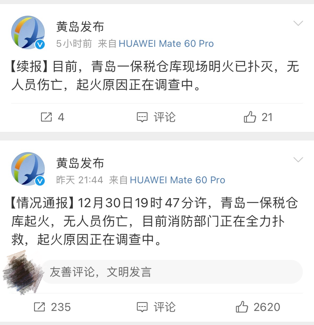 2023年12月30日19時(shí)47分許,青島一保稅倉庫起火,引發(fā)網(wǎng)友關(guān)注。