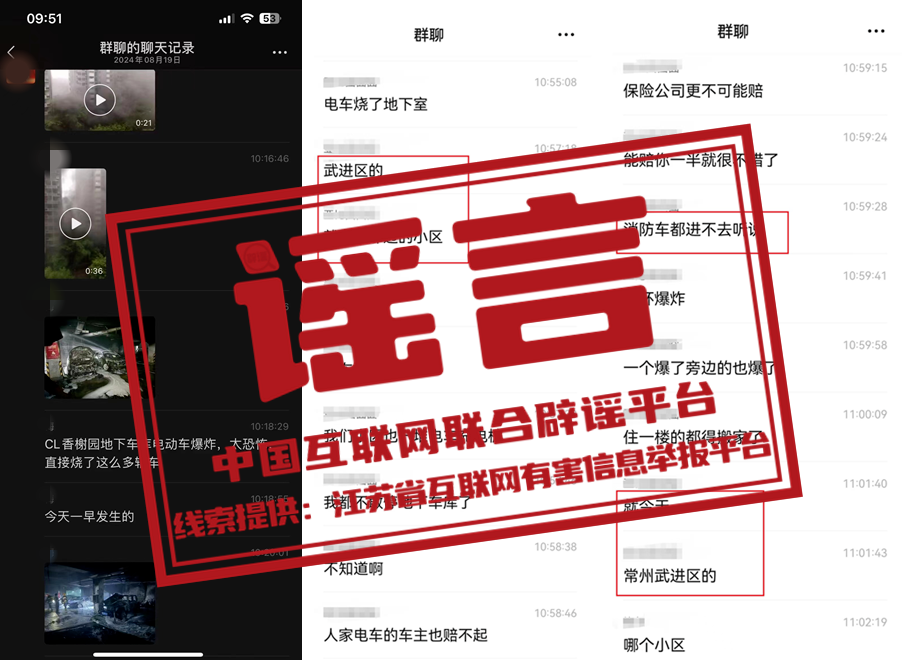 謠 言  江蘇常州一小區(qū)電車充電連環(huán)爆炸火燒地下室?