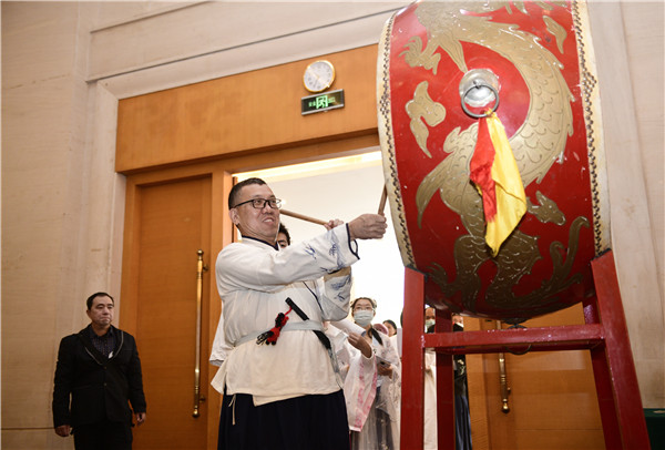 活動(dòng)在一支輕盈優(yōu)美的油紙傘古典舞中開場(chǎng),大賽現(xiàn)場(chǎng)布置還原古代文化廟會(huì)的場(chǎng)景,33位踢館作者身著漢服,分三批進(jìn)場(chǎng)。參賽選手進(jìn)場(chǎng)后首先擊鼓三下,而后呈稿,書童接稿后,再傳給臺(tái)上踢館賽評(píng)委。